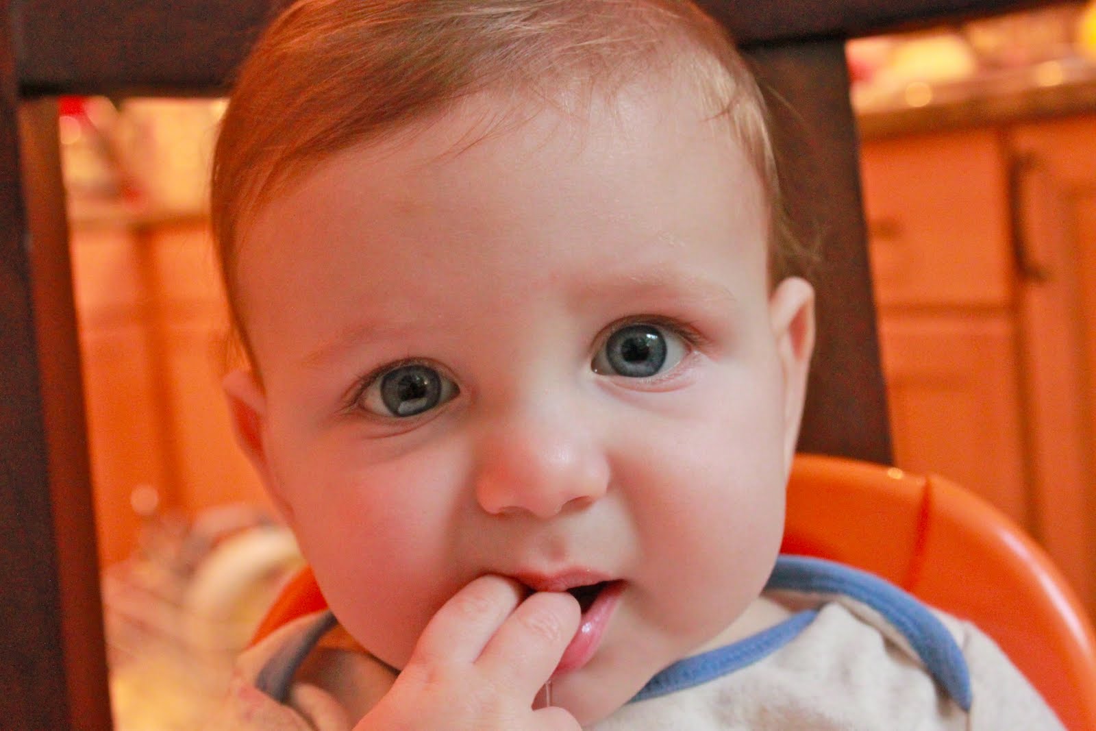 He was a very happy baby; he'd just had a bowlful of his favorite greek yogurt with mangos AND a head massage (hence the hair slicked up). And while we're on the subject of babies eating, William is feeling very proud of his pincer grasp...when it works. Mealtimes are now an opportunity to witness the whole range of our baby's emotions (minus the screaming at the top of his lungs wail. That one, he saves for just me when no one else is around).